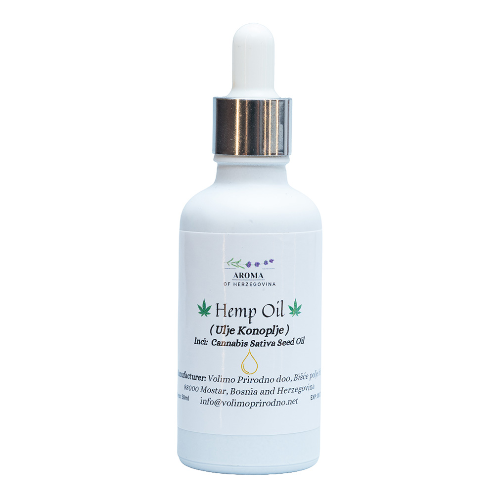 Hladno prešano ulje konoplje poznato je po izuzetno uravnoteženom sastavu masnih kiselina koje doprinose zdravlju i vitalnosti kože. Lagane teksture, brzo se upija i pomaže u smirivanju suhe, osjetljive i iritirane kože bez osjećaja težine. Redovnom upotrebom koža postaje mekša, elastičnija i vidljivo nahranjena. Posebno je pogodno za njegu kože sklone crvenilu, dehidraciji i vanjskim utjecajima. Može se koristiti samostalno ili kao dodatak kozmetičkim preparatima za lice, tijelo i kosu. Ulje konoplje idealan je izbor za prirodnu, svakodnevnu njegu koja podržava ravnotežu i obnovu kože.